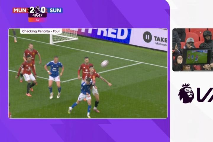 (镜头转向英超官方发言人)发言人(严肃):经VAR核实,曼联球员不存在犯规行为。由于判罚时球已出界,最终改判为角球。